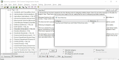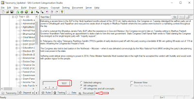 n my last blog, I have covered Text Analysis and Text Parsing. In this blog I am going to cover Text Analystics module i.e. SAS Content Categorization Studio. By using SAS Content Categorization Studio we can categorize the unstructured text data. This process is known as building taxonomy.
